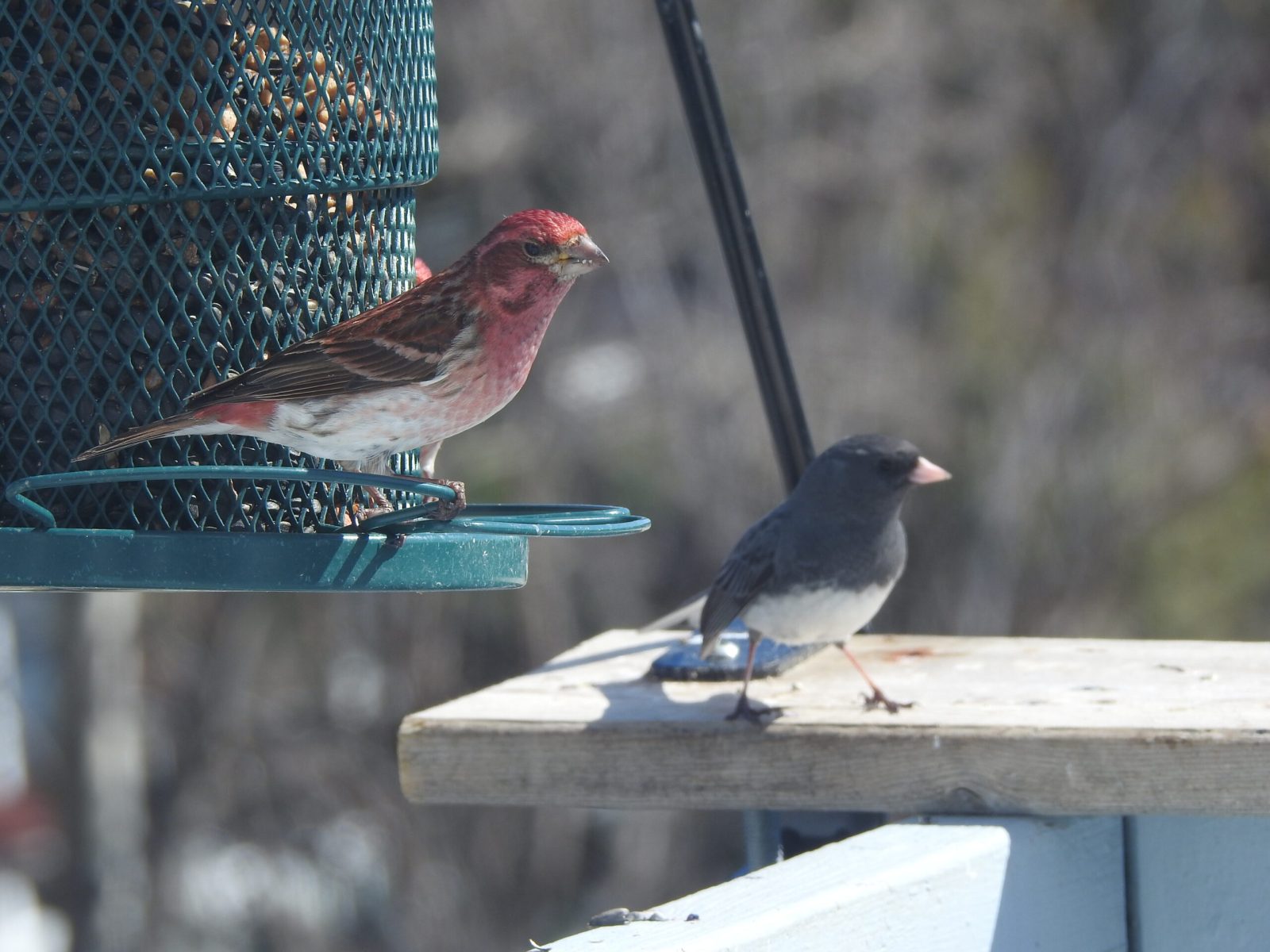 Male Purple Finch and Dark-eyed Junco