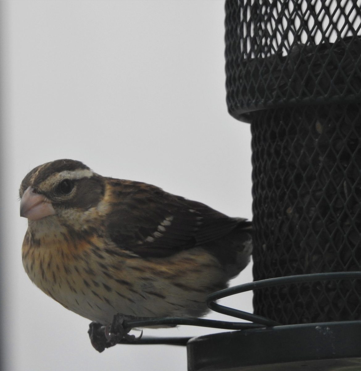 Female Rose-Breasted Grosbeak visits our feeder